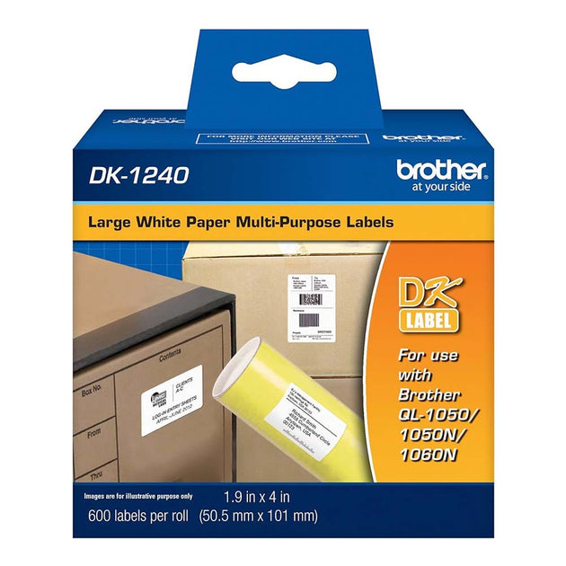 Rollo de etiqueta blanco, DK1240, BROTHER, de 2'' x 4'', 600 Etiquetas
