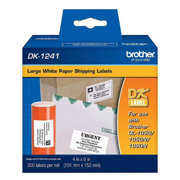 Rollo de etiquetas de envío grandes, DK1241 BROTHER, 4 pulg. x 6 pulg. 101 mm x 152 mm, 200 etiquetas