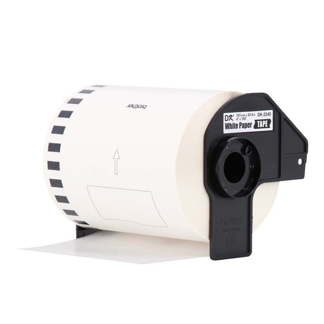 Cinta film de largo continuo, DK2243, BROTHER, en color negro sobre blanco de 4 pulg. x 100 pies, 101 mm x 30,4 m