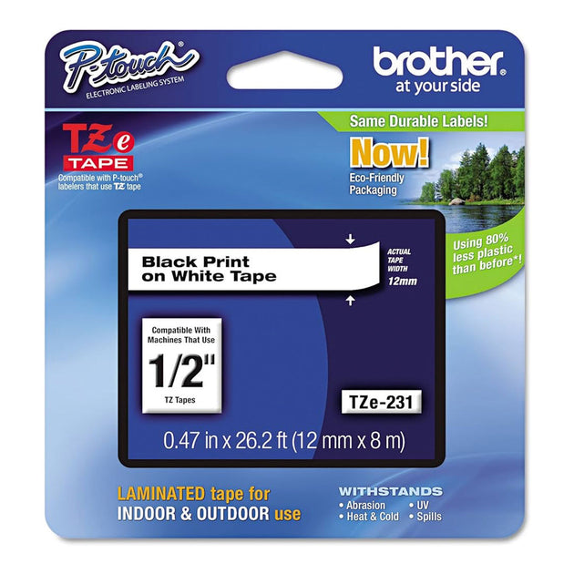 Cinta negra sobre blanco, TZE231, BROTHER, de 12 mm (0,47") para P-Touch 8m (26,2')