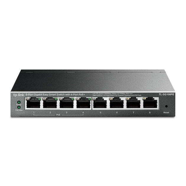 Switch easy smart de 8 puertos gigabit con 4 puertos PoE+ TL-SG108PE, TP LINK